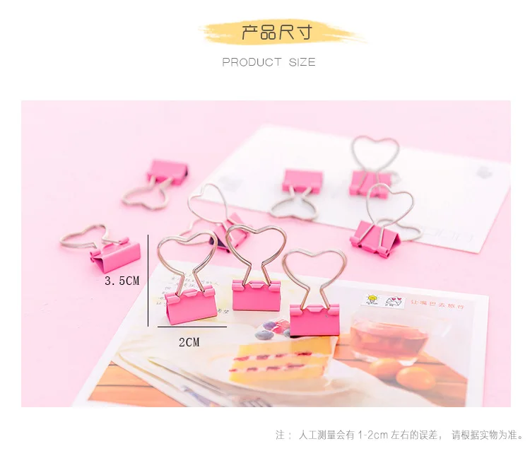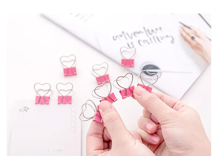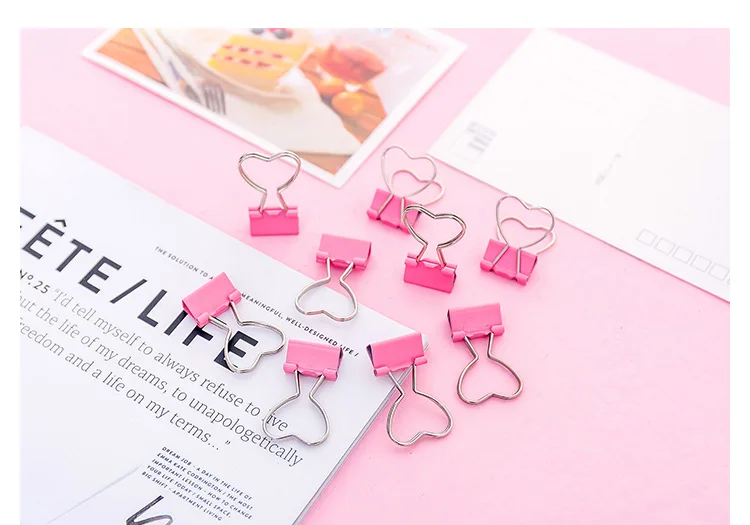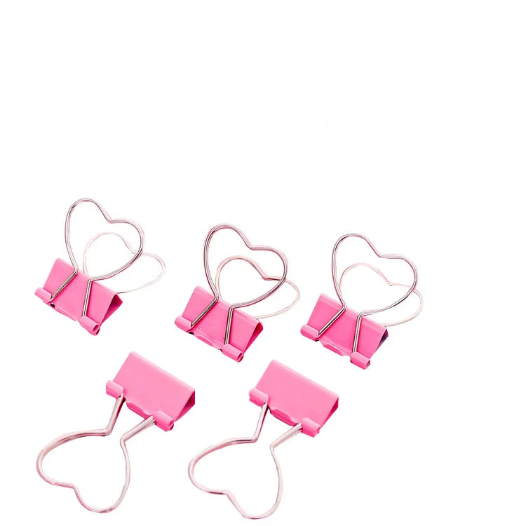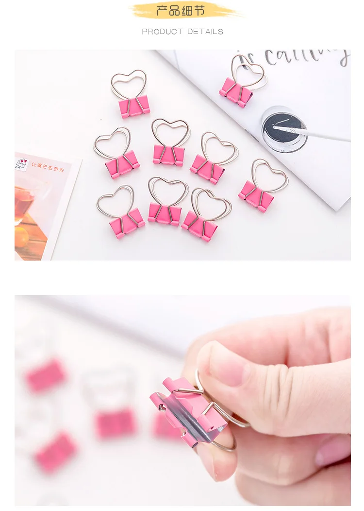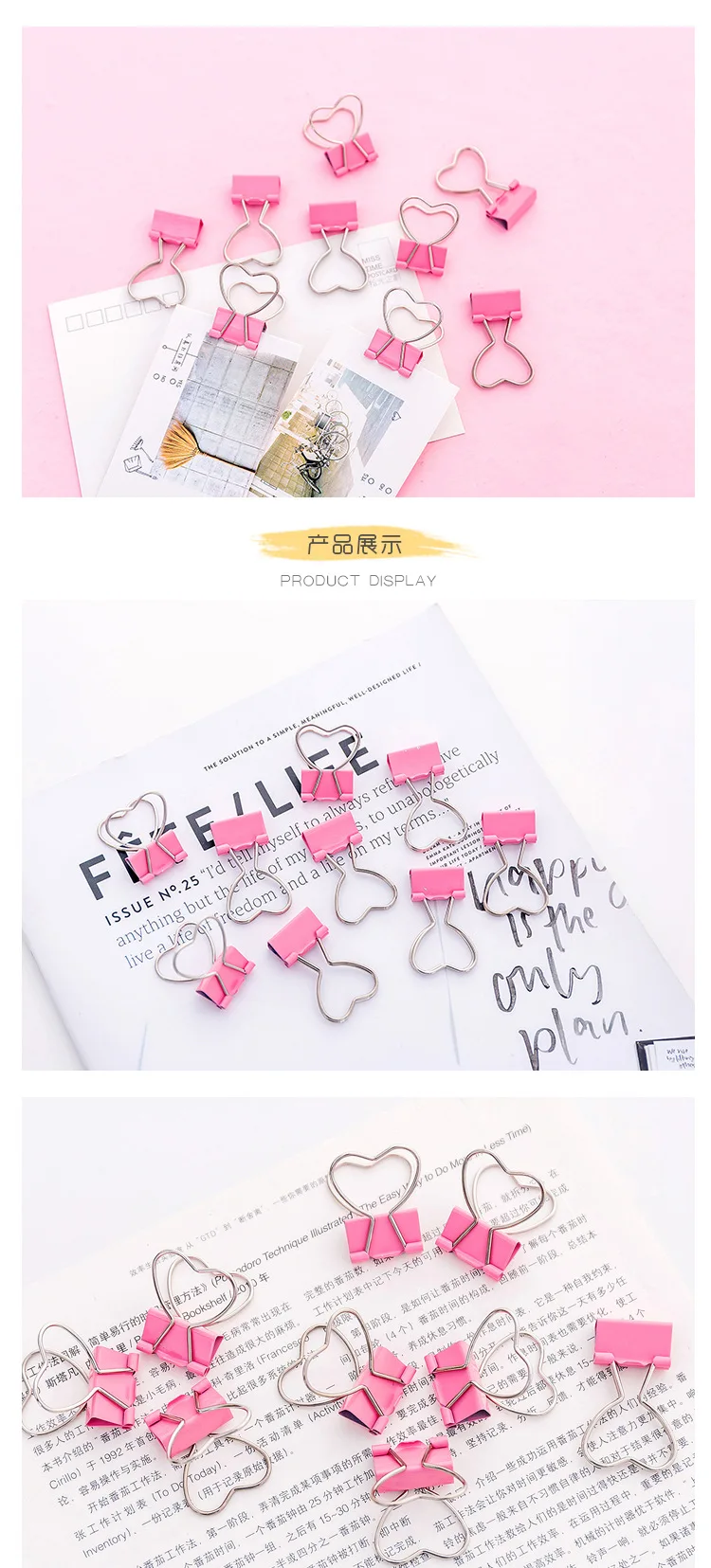 25Pcs Mini Cute Pink Long Tail Clip Love Shape Student Exam Paper Folder Photo Album Metal Binder Office School Stationery