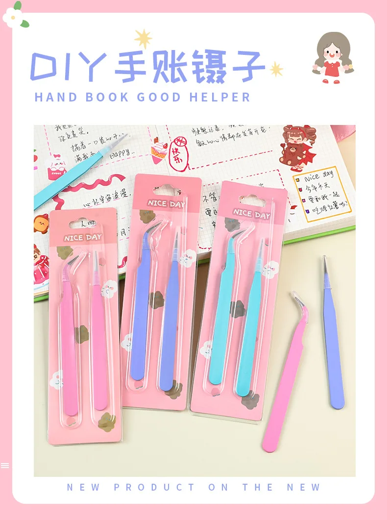 2pcs Tweezers Creative Macaroon Color Clip for DIY Decroative Journal Diary Scrapbook Sticker Tool Back To School Student Supply