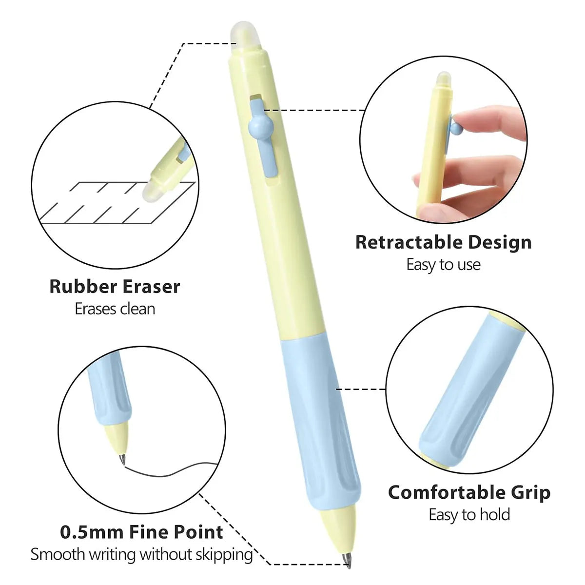 4-Pack Erasable Gel Ink Pens, Retractable Gel Pens, 0.5mm Fine Point, Blue & Ink, Smooth Writing for Home, School & Office