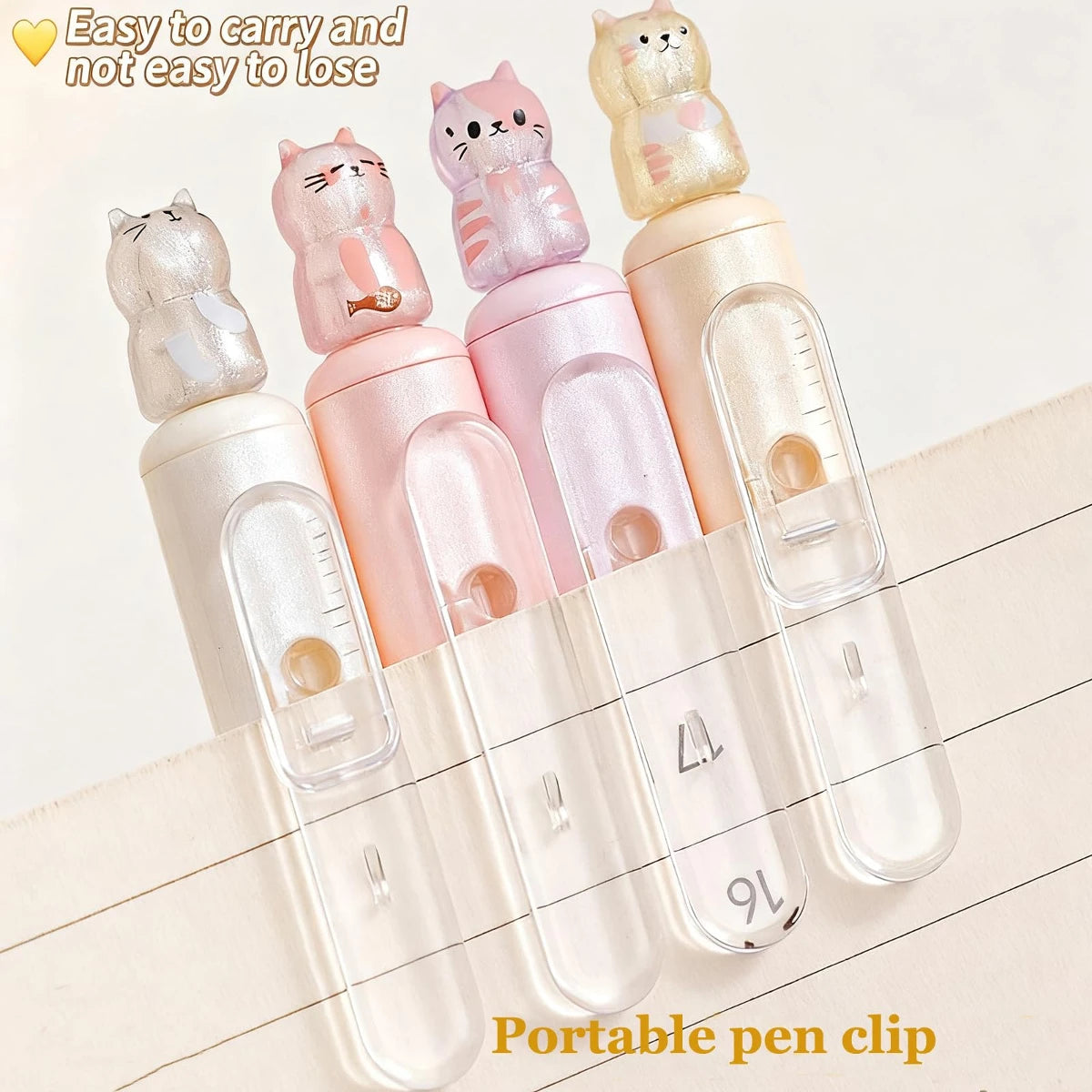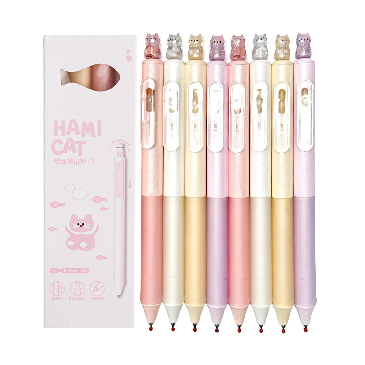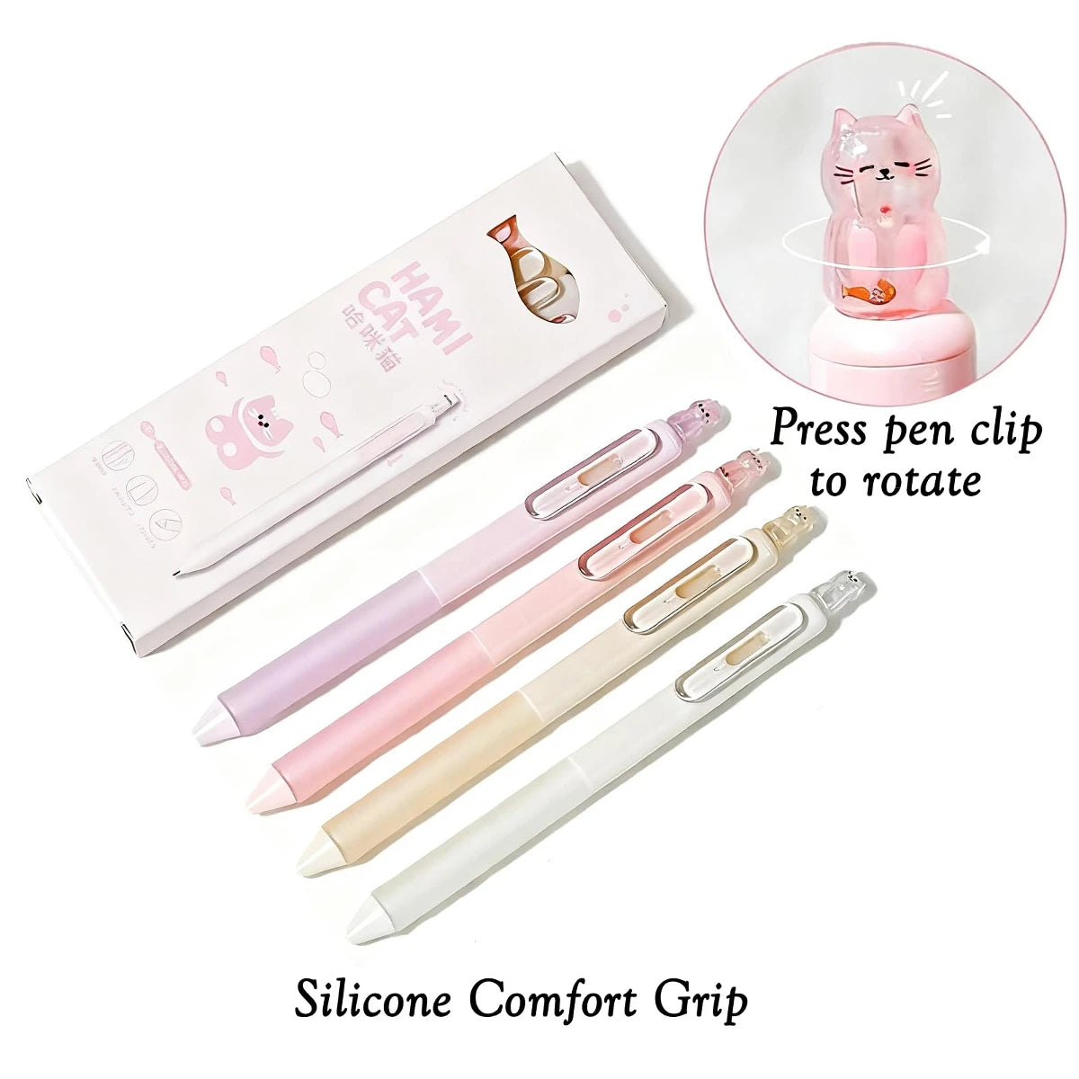 4pcs Kawaii Cat Retractable Gel Pens, Ink Fine Tip 0.5mm, Smooth Writing Cute Ballpoint Pens for Note Taking, Office School Supp