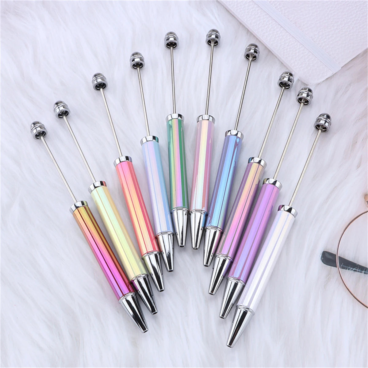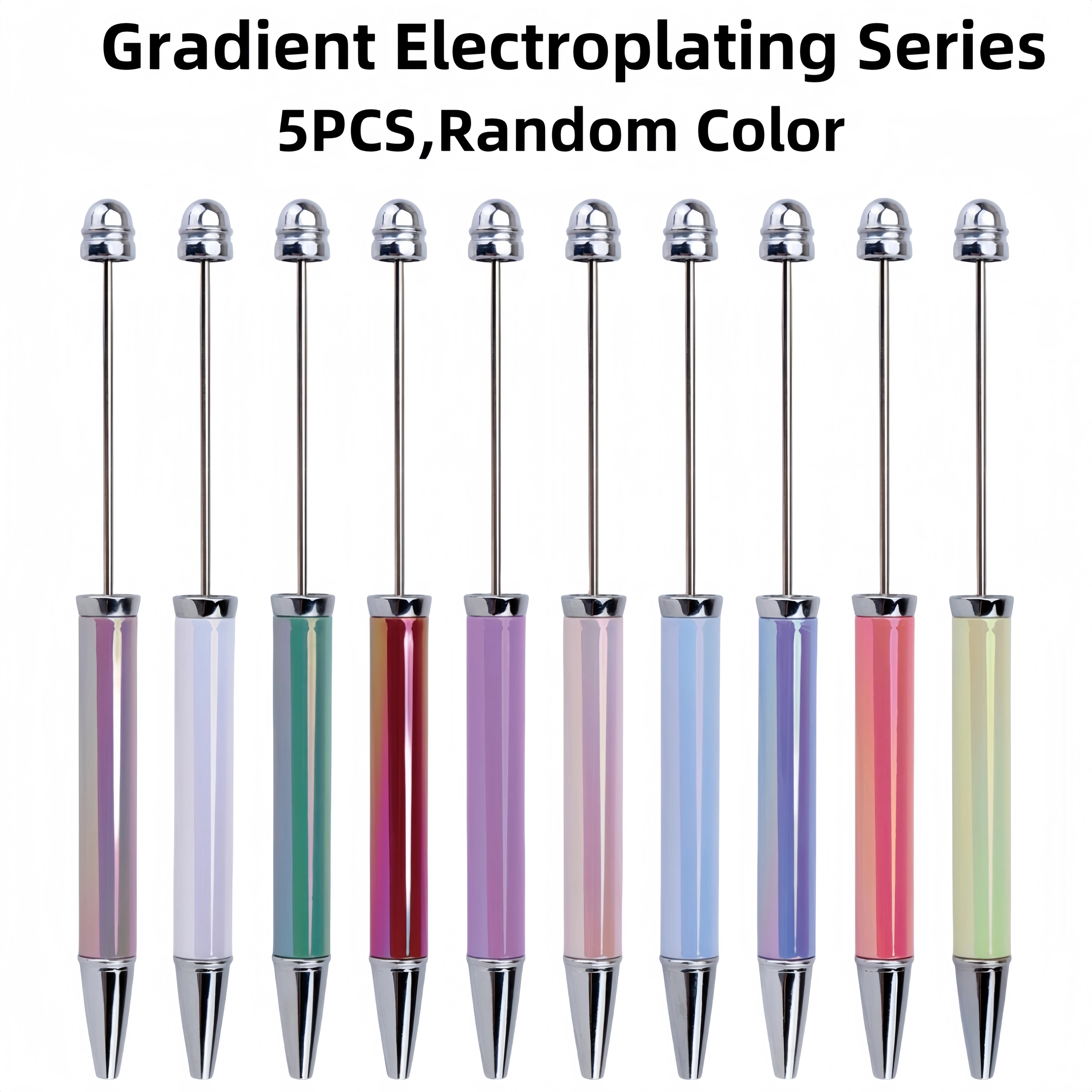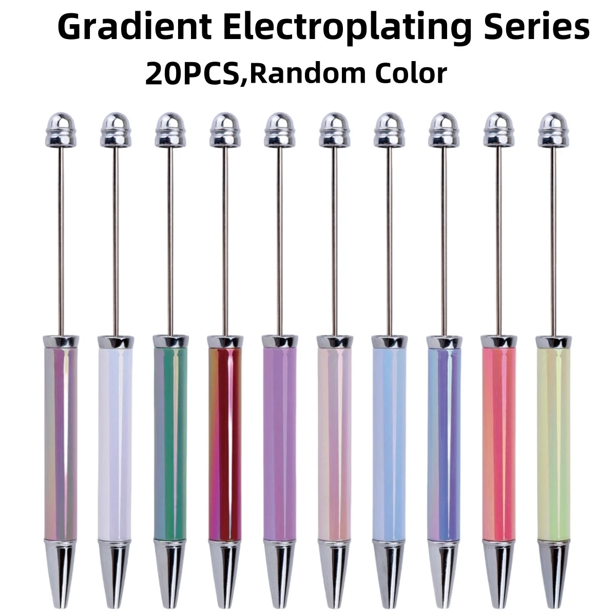 5PCS/10PCS/20PCS new boutique electroplated rainbow gradient bead ballpoint pen set (random color),black ink plastic material