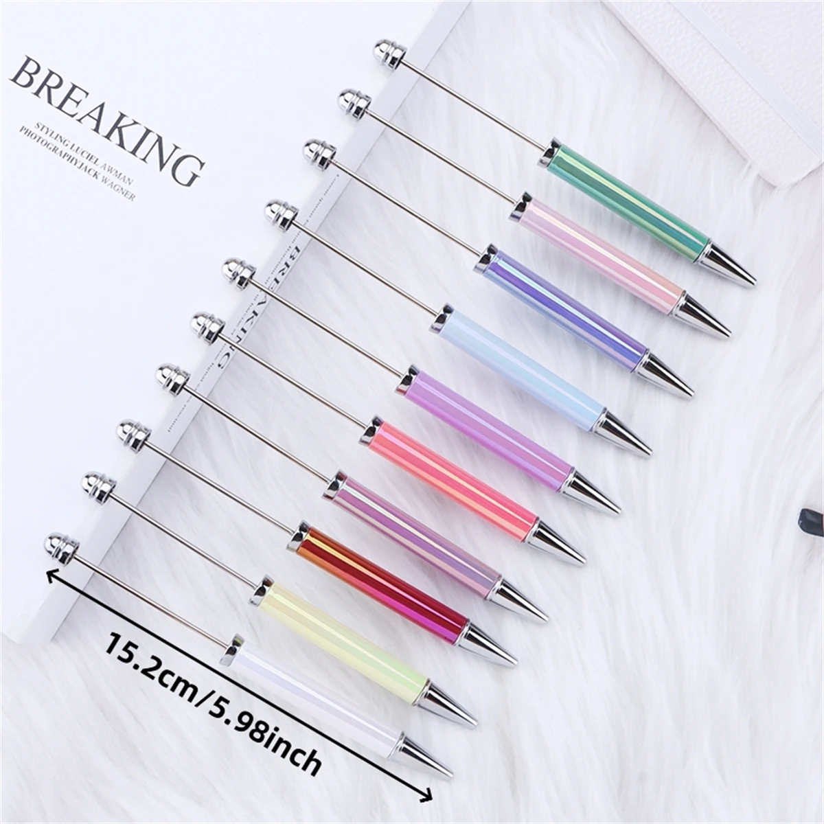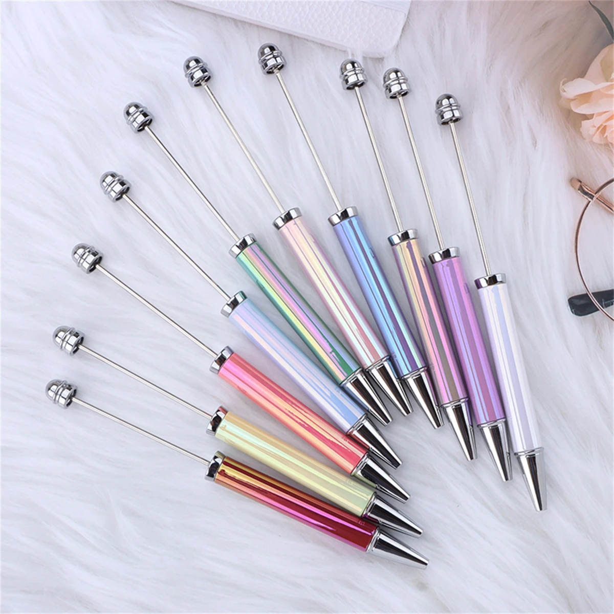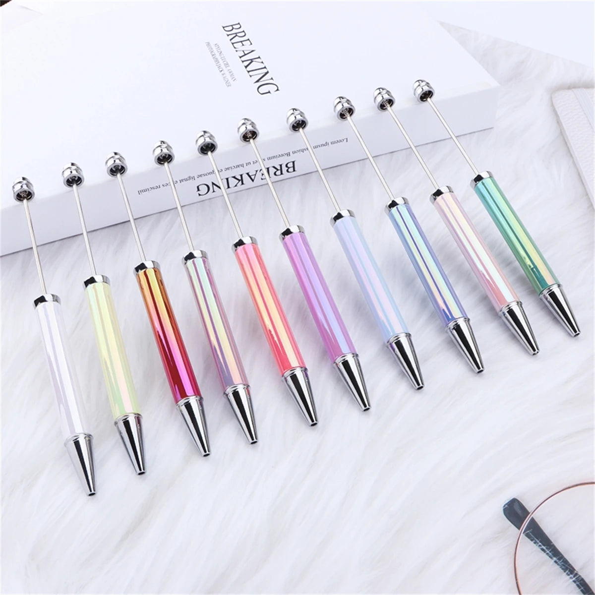 5PCS/10PCS/20PCS new boutique electroplated rainbow gradient bead ballpoint pen set (random color),black ink plastic material