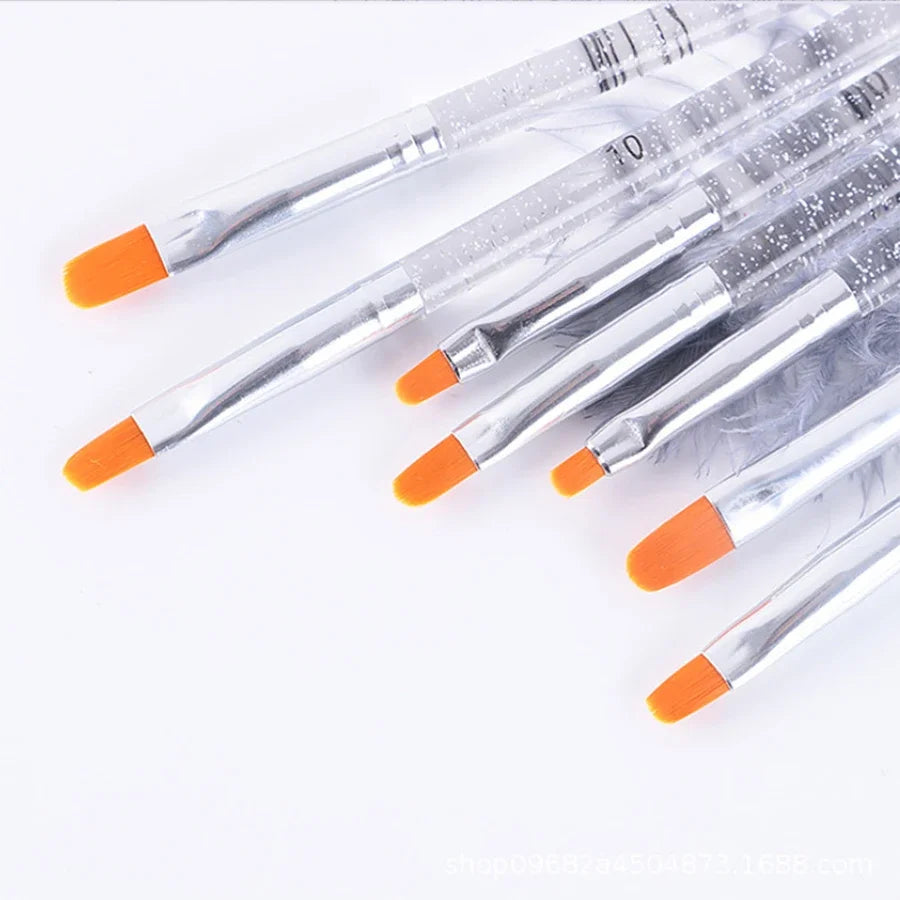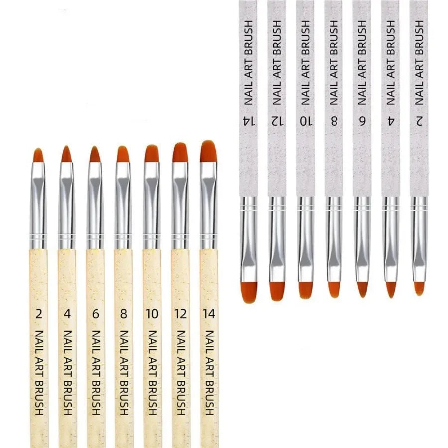 7Pcs UV Gel Nail Art Brushes Set - Poly Extension & Builder Pens No.2-14 - Pro Nail Art Tools for Gel Extension & Painting