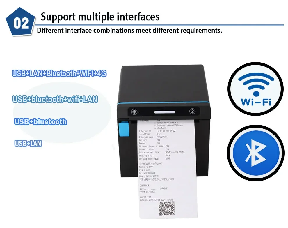 80mm Thermal Receipt POS Printer USB LAN WIFI/Bluetooth Wireless Thermal Print Auto Cutter for Retails Support Ubereat Doordash