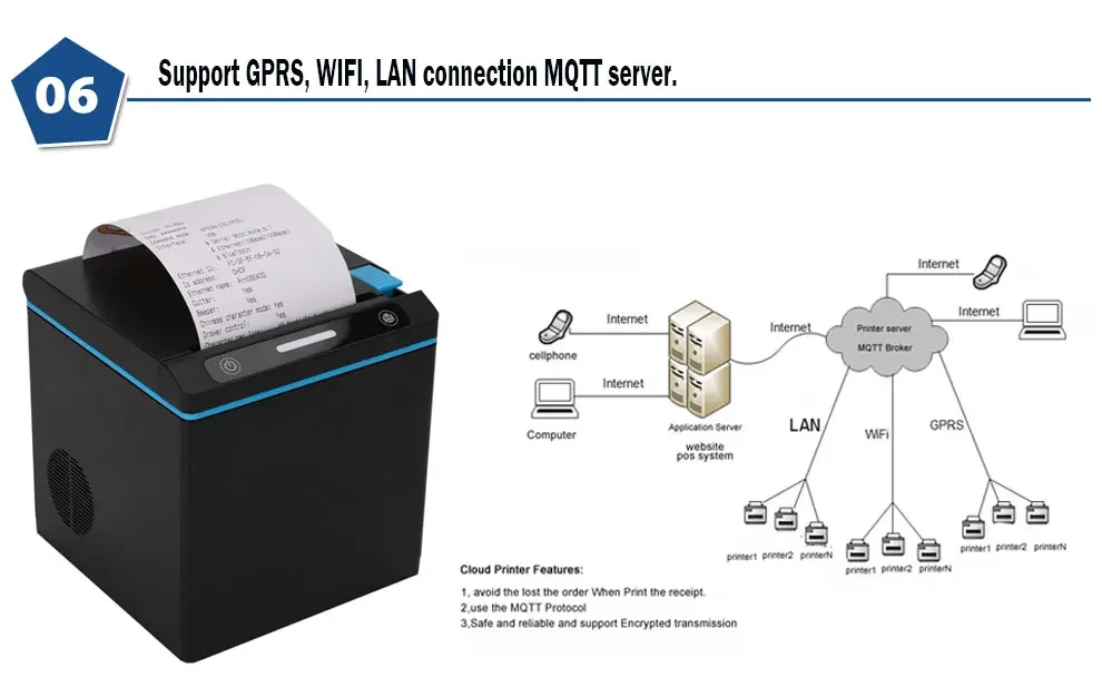 u Modern and compact design 3" thermal receipt printer;
